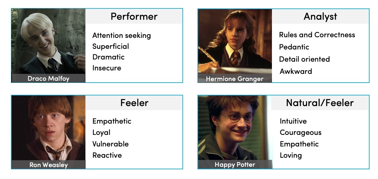 Let’s move in a different direction. The main characters of Harry Potter seem to fit well into the Vibes Framework.